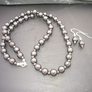 - 8mm Hematite Round Necklace and Earrings
